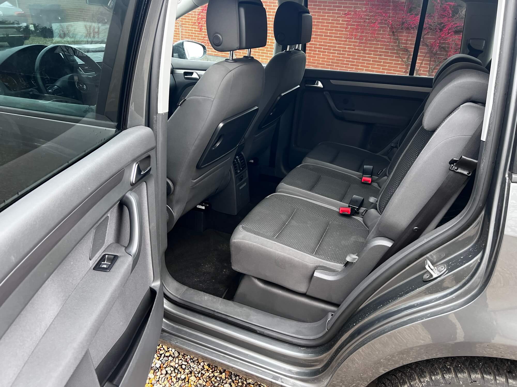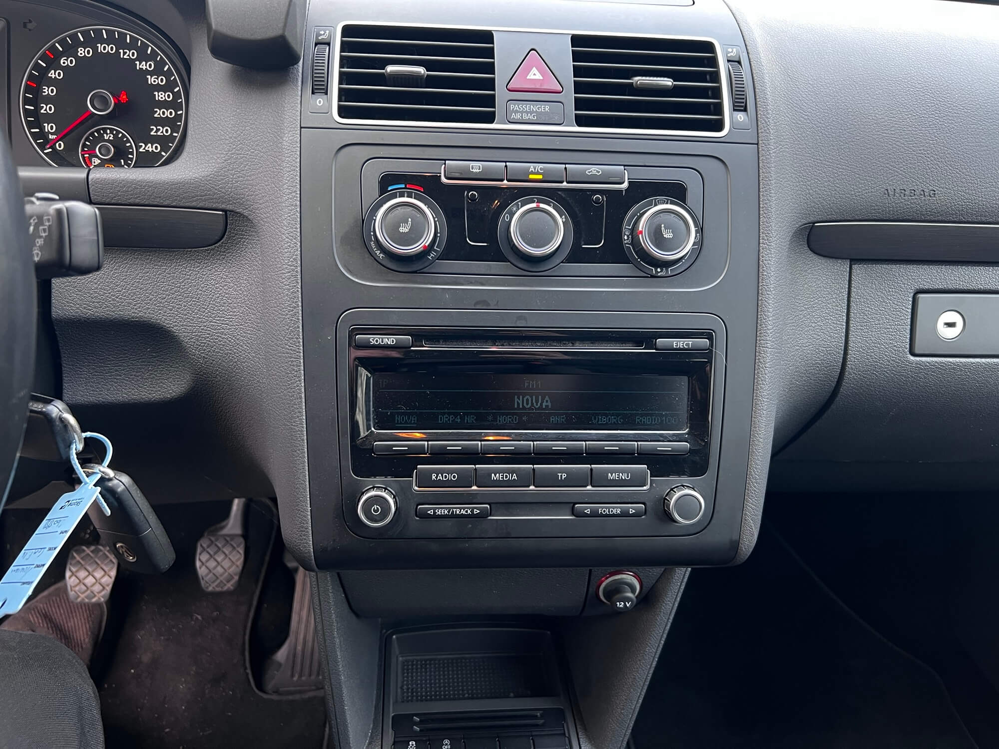 MODELTouranCubic Capacity1598Number of Seats5Emission ClassEuro 5Number of Vehicle Owners2ClimatisationA/CParking sensorsRearFirst registration07/2012TUV/SYNNewMileage297000kmFuel typediezelGear typemanualHp105ColorGreyInterior DesignCloth, black